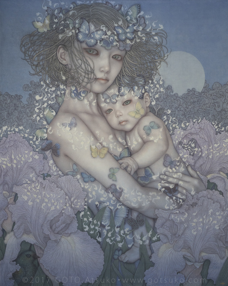For a long, long time ago 1500mm x 1200mm / Cotton, Glue, Pigments, Gum arabic, Japanese ink, Lapis-lazuli Fragment of stars F40 / Cotton, Glue, Pigments, Gum arabic, Japanese ink, Lapis-lazuli Rain of Joy & sorrow 408×604mm / Cotton, Glue, Pigments, Gum arabic, Japanese ink, Lapis-lazuli I dreamed about you 409×243mm / Cotton, Glue, Pigments, Gum arabic, Japanese ink, Lapis-lazuli Wave of heat in the strange night 530mm×333mm / Cotton, Glue, Pigments, Gum arabic, Japanese ink, Lapis-lazuli A hopeless girl 409×243mm / Cotton, Glue, Pigments, Gum arabic, Japanese ink, Lapis-lazuli A Greedy Girl 412×244mm / Cotton, Glue, Pigments, Gum arabic, Japanese ink, Lapis-lazuli Dreadful dream 606×410mm / Cotton, Glue, Pigments, Gum arabic, Japanese ink, Lapis-lazuli Secret party 606×410mm / Cotton, Glue, Pigments, Gum arabic, Japanese ink, Lapis-lazuli Raging spring wind 333×242mm / Cotton, Glue, Pigments, Gum arabic, Japanese ink, Lapis-lazuli Malicious fruits 333×242mm / Cotton, Glue, Pigments, Gum arabic, Japanese ink, Lapis-lazuli Betterfly VIII 90×122mm /Pencil, Paper Betterfly IX 90×140mm /Pencil, Paper Betterfly V 90×140mm /Pencil, Paper Betterfly VI 100×100mm /Pencil, Paper Betterfly VII 75×75mm /Pencil, Paper Betterfly VI 90×140mm /Pencil, Paper Betterfly III 90×140mm /Pencil, Paper The third eye II 98×90mm /Pencil, Paper The third eye III 112×99mm /Pencil, Paper 12►
